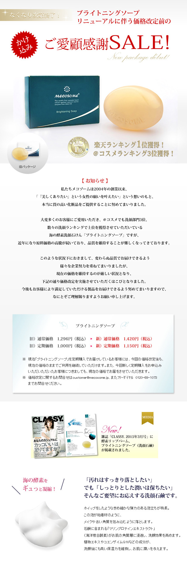 酵素コスメ・酵素化粧品のメコゾームTOP ビューティコラム ブライトニングソープご愛顧セール! ビューティコラム ブライトニングソープご愛顧セール! ご好評につき、ご愛顧感謝セールは終了いたしました。 ご好評につき、ご愛顧感謝セールは終了いたしました。 ビューティコラム